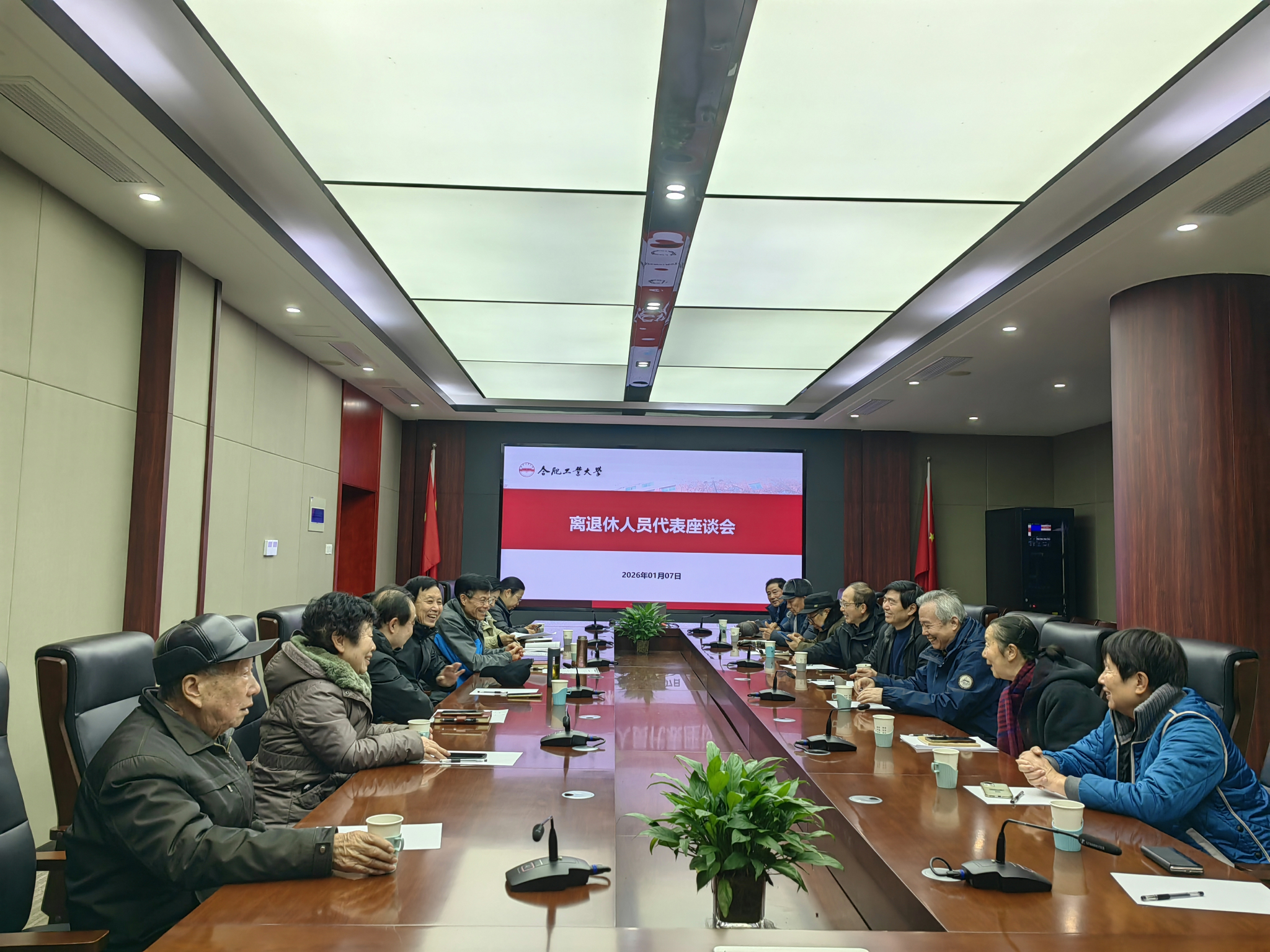 1月7日,我校在学术会议中心召开离退休教职工代表座谈会。校党委常委、副校长季益洪、党委离退休部门负责人与离退休老同志集聚一堂,共忆办学初心,共话学校发展,认真倾听老同志心声,积极回应大家关切诉求。