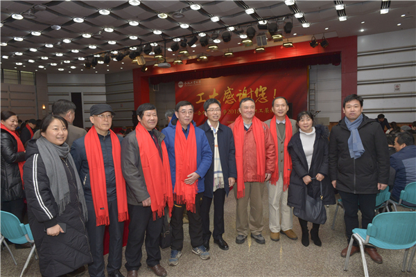 仪式现场,“工大感谢您”的大幅喷绘营造出暖意融融的气氛。在轻松动人的音乐声中,全体荣休教职工走向舞台,接受学校颁发的荣休证书,并与校领导合影留念。