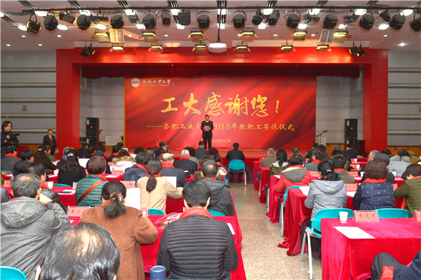 12月27日下午,学校在屯溪路校区东风报告厅举行了合肥工业大学2018年教职工荣休仪式。全体校领导、200多位在职教职工和部分学生,为2018年荣休的124位教职工献上感谢与祝福。校党政领导梁樑、陆林、陈刚、刘晓平、刘志峰、闫平、季益洪、陈鸿海为学校2018年退休教职工颁发了荣休证书。校党委副书记陈刚主持了荣休仪式。