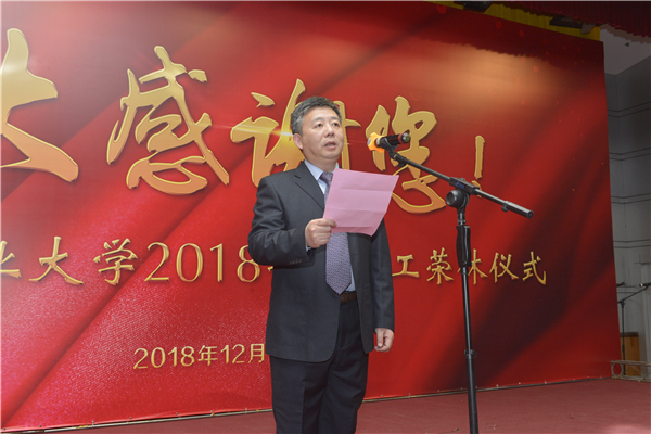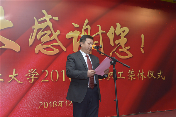 荣休仪式上,党委教师工作部部长、人事处处长朱华炳宣读了学校2018年124位荣休教职工名单。